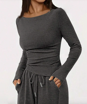 Women's Solid Color Crew Neck Long Sleeve T-Shirt And Waist Tie Pants Casual Suit, Spring & Autumn