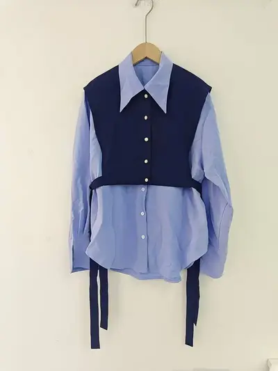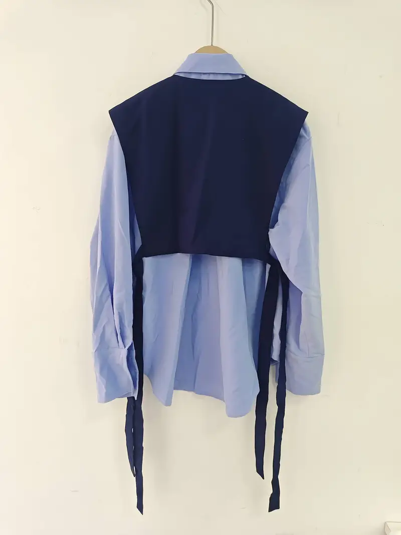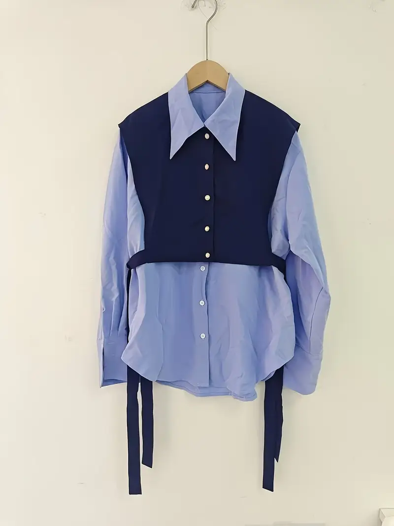 Women'S Korean Style Layered Tie-Front Blouse